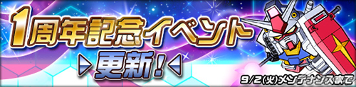 好評開催中の「1週年記念イベント」の内容に、「超総力戦チャンスガシャ回数2倍イベント」と「敵撃破時獲得GPアップイベント」が追加された。