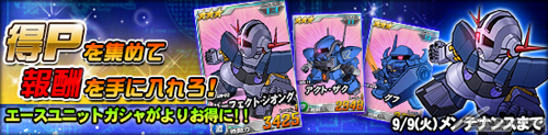 ○「エースユニットガシャ」および「11連エースユニットガシャ」以外から「得P」は入手できません。