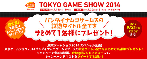 「東京ゲームショウ2014」バンダイナムコゲームスの全試遊タイトルがまとめて当たるキャンペーン実施中!