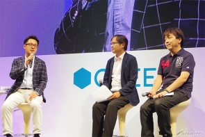 GREEブース内の特設ステージには、本作の開発を担当するバンダイナムコゲームスの後藤能孝氏と、バンダイナムコオンラインの近藤貴浩氏、そしてGREEの屋島新平氏が登壇。