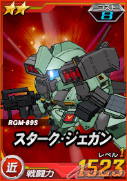 【左】「クシャトリヤ」に対し3倍の攻撃力を発揮する「★2 スターク・ジェガン」