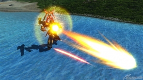 ▲特殊射撃武装「ビームバスター」では、照射ビームを放つ。