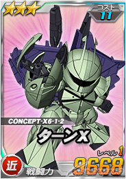 同機を倒した際に引くことができるチャンスガシャSには「★3 バンデット」を獲得できるチャンスがあるほか、エースユニットガシャには「ギンガナム搭乗ターンX」に対し6倍の攻撃力を発揮する「★2 コレン・ナンダー専用カプル」が追加される。