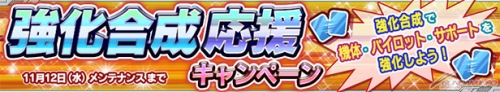 11月12日(水)メンテナンス開始までのイベント期間中、機体、パイロット、サポートカード強化合成を行なった際に獲得できるレアリティごとの経験値が通常時の2倍となる。ただし、ハロおよび強化カプセルでの獲得経験値はキャンペーンの対象外となっている。