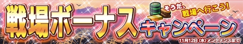 11月12日(水)メンテナンス開始までのイベント期間中、戦場や曜日ミッションにて戦闘経験値ボーナスや資源量ボーナスなど、5つのボーナスを受けることができる。