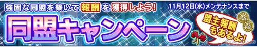11月12日(水)メンテナンス開始時点で所属している同盟人数のうち、7日未満接続の同盟人数に応じたさまざまな報酬が配布される。