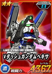【右】「ファラ搭乗ザンネック」に対し6倍の攻撃力を発揮する「★2 Vダッシュガンダムヘキサ」