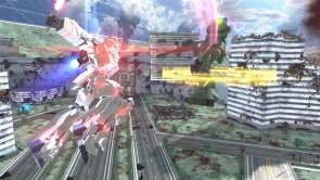 ▲素早い連撃で敵に反撃の隙を与えずに攻撃可能!超接近用武器のためシールドガードをされると苦戦することも!?「△」ボタンで敵機と一緒に空中へ!空中で連続攻撃を一気に叩き込め!