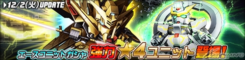 エースユニットガシャに「★4 アカツキ(オオワシ)」、「★4 スターゲイザー」、「★3 GNアーチャー」が登場する。