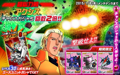同機を倒した際に引くことができるチャンスガシャSには「★3 リ・ガズィ(BWS)」を獲得できるチャンスがあるほか、エースユニットガシャには「アクシズ」に対し6倍の攻撃力を発揮する「★2 νガンダム」が追加される。