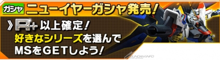 好きなシリーズを選んでMSとパイロットをゲットできるR+以上確定のニューイヤーガシャが販売される。