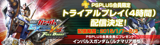 株式会社ソニー・コンピュータエンタテインメントジャパンアジアが提供する有料サービス「PlayStation Plus」(以下PS PLUS)にて、PS3「機動戦士ガンダムEXTREME VS. FULL BOOST」のトライアル配信が、いよいよ明日1月7日(水)よりスタートする。