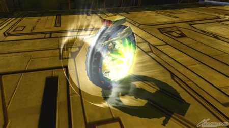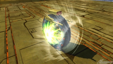 また、チャージ格闘ではアインラッドを土台にしてホバリング状態で戦う浮遊モードとなる。メイン射撃の「ビーム・ライフル」が3連射となるほか、特殊射撃の「ビーム・シールド【照射】」が真下への発射となり、爆風を発生させるようになるなど性能が大きく変化する。