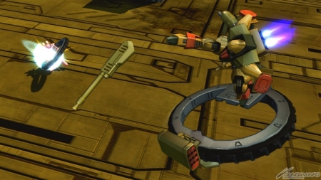 追従中に敵機の攻撃を受けると肩のアーマーが吹き飛ぶ原作再現の演出が入る。