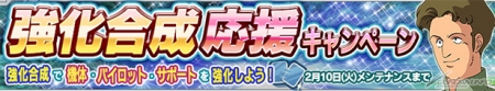 期間中、機体・パイロット・サポートの強化合成を行なった際、獲得できるレアリティごとの基礎経験値が、通常時の2倍になります!