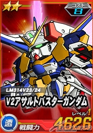 【右】カテジナ搭乗ゴトラタンに対し6倍の攻撃力を発揮する「★2 V2アサルトバスターガンダム」