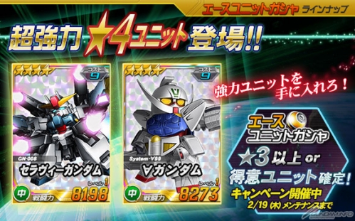 さらに、エースユニットガシャに「★4 セラヴィーガンダム」、「★4 ∀ガンダム」が追加されたほか、「★3以上 or 得意ユニット確定キャンペーン」や「バレンタインイベント」など3つのイベントとキャンペーンも同時にスタートしたのであわせて紹介していこう。
