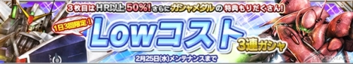 ■ 「砲撃の脅威ガシャ」&「Lowコスト3連ガシャ」が期間限定で登場!