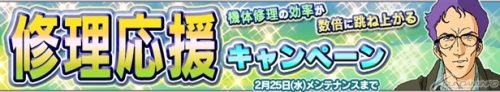 機体修理の効率が大幅にアップする「修理応援キャンペーン」、期間中に曜日ミッションでボーナスを受け取ることのできる「曜日ミッションボーナスキャンペーン」、対象のスキルレベルを上げることで合成強化ガシャメダルを受け取ることができる「機体スキル強化プロジェクト」が、期間限定で同時開催される。ぜひともこのお得な機会にゲームをプレイしよう。