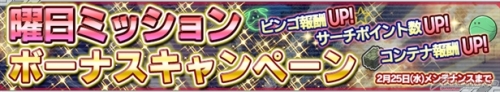期間中、曜日ミッションに出撃することでボーナスを受け取ることができる。