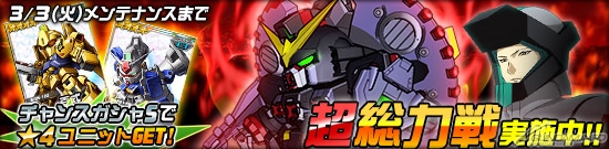 同機を倒した際に引くことができるチャンスガシャSには「★4 フリーダムガンダム」、「★4 ガンダム試作一号機フルバーニアン」、「★4 百式」、「★4 シャア専用ゲルググ」、「★4 ゲーマルク」などを獲得できるチャンスがあるほか、エースユニットガシャには「スティング搭乗デストロイガンダム(MS)」に対し3倍の攻撃力を発揮する「★2 デスティニーガンダム」が追加。