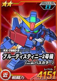 ※「★2 ブルーディスティニー2号機(ニムバスカラー)」、「★2 ブルーディスティニー3号機」、「★2 ガンダムエクシア」は、Lv20に成長した状態でプレゼントいたします。