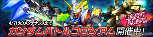 本日3月31日(火)より、「ガンダムバトルコロシアム」と「獲得PPアップキャンペーン」が同時にスタートした。