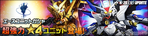 Ace Unit Gasha additions include the four-star Strike Freedom Gundam and Akatsuki Shiranui, and there's also an increased appearance rate of Mobile Suit Gundam 00 units and a special Golden Week event.