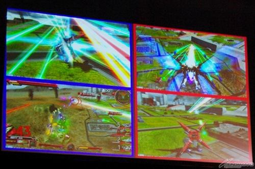 そして、大久保プロデューサーと、同じく開発スタッフの大石勇気氏が登壇し、EXVS.シリーズの新情報が公開された。今夏に行われる「EXVS.MB」の大会「SUMMER BATTLE」の開催決定や、PlayStation3専用ソフト「機動戦士ガンダム EXTREME VS. FULL BOOST」の大型アップデートなど、どれも見逃せない内容だったが、「EXVS.MB」に追加される新機体が発表されると、ファンからひときわ大きな歓声が上がった。