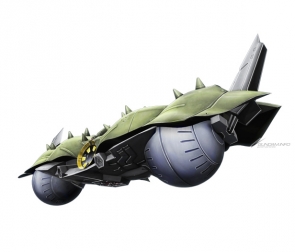 The completed iteration of Zeon science officer Ginias Sahalin's Apsalus experimental mobile armor. Equipped with dual Minovsky Crafts, three mobile suit generators are required to provide sufficient power for its operation. The firing mode of its massive mega particle cannon can selected, and at full output it's capable of wiping out enemies in the blink of an eye.