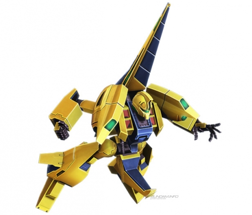 A prototype suit developed on Axis, designed for extreme mobility in space with shoulder- and waist-mounted thrusters. It is equipped with a Psycommu, and can detatch its beam cannon-equipped arms to perform wired all-range attacks.