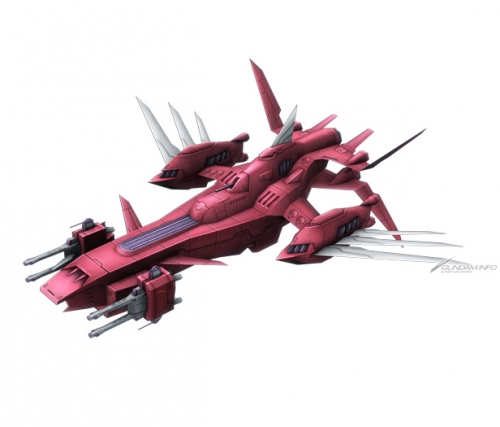 A support ship laid down to operate as the carrier for the Neutron Jammer Canceller-equipped Freedom Gundam and Justice Gundam. Their "METEOR" enhanced weapon system modules can attach to its bow and be used to supplement the ship's armament.