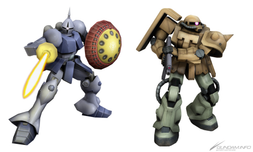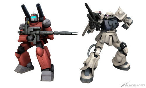 ▲ The "Zaku II (Kimberlite)" and "Zaku II (Torrington)" are versatile Assault types with a well-rounded range of weaponry, and the "Gyan" is a speedy close-up Assault-type fighter with needle missiles that allow for a continued attack even with shield raised. The "Guncannon" is an Artillery type which provides support from the rear and crushes enemy lines with mortar and howitzer fire. Each one is a powerful suit that'll be an asset on the battlefield!
