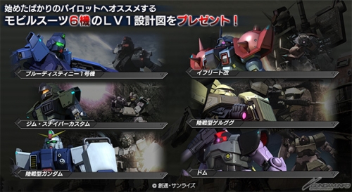 ▲期間中は「ブルーディスティニー1号機」や「イフリート改」など、連邦・ジオンあわせて6機のMSの完成設計図がプレゼントされるぞ!