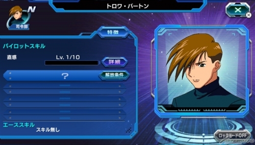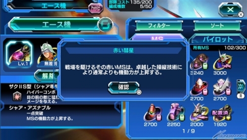 】部隊に1機だけ編成でき、MSが持つ「MSスキル」に加え、搭乗させたパイロットの「エーススキル」も発動できる。