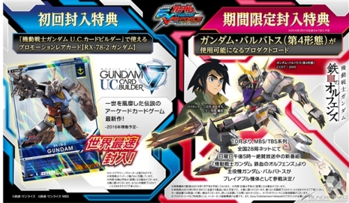 期間限定特典として、好評放送中のTVシリーズ最新作『機動戦士ガンダム 鉄血のオルフェンズ』より、主人公機「ガンダム・バルバトス(第4形態)」が使用可能になるプロダクトコードを封入。