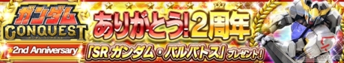「ガンダムコンクエスト」が2015年12月10日(木)にサービス開始2周年を迎えることを記念し、勢力オールの「SR ガンダム・バルバトス」がプレゼントされる。