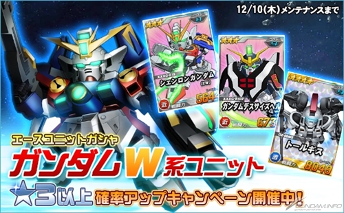 ※「★3以上『新機動戦記ガンダムW系ユニット』確率アップキャンペーン」は、期間中に「エースユニットガシャ」および「11連エースユニットガシャ」を引いたプレイヤーが対象となります。