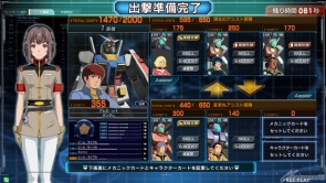 【左】メインユニット編制画面。メカニックカードとパイロットカードを組み合わせて、ゲーム中に操作するユニットを最大3機まで編制できる。