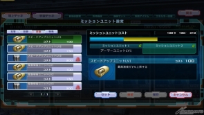 ▲ミッションユニットは「MUコスト」の上限値までセットすることができ、編成にあわせたより幅広いカスタマイズが可能。