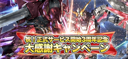 「機動戦士ガンダムオンライン」が正式サービス開始3周年を迎えることを記念して、「3周年記念大感謝キャンペーン」が開催中だ。