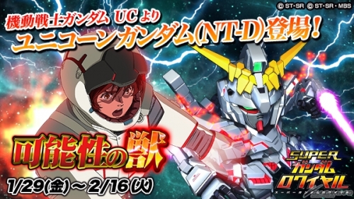 バンダイナムコエンターテインメントより好評配信中のiOS/Android「スーパーガンダムロワイヤル」では、本日1月29日(金)より『機動戦士ガンダムUC』を題材としたイベント「可能性の獣」がスタートした。