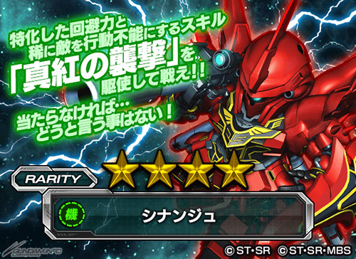 イベント「可能性の獣」のシナリオをクリアすると、『機動戦士ガンダムUC』より主人公「バナージ・リンクス(★3)」と、機体「クシャトリヤ(★3)」を入手できる。さらに、チャレンジクエストでは、一定確率で機体「シナンジュ(★3)」を獲得できるチャンスもある。