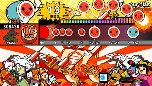 「太鼓の達人 Vバージョン」は、太鼓の音が割り当てられたボタンを、音楽にあわせて流れてくる音符に合わせて押して遊ぶ音楽ゲーム。新しい曲やきせかえなどを追加できる機能を搭載しており、発売後も続々と追加コンテンツが配信されている。
