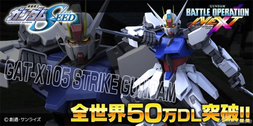 キャンペーンは、「ガンダムバトルオペレーションNEXT」が全世界で50万ダウンロードを突破したことを記念して開催されるもので、2月14日(日)までに本作をダウンロードしている人を対象に、「ストライクガンダム」を入手できるプロダクトコードが5つ配布される。まだダウンロードしていない人は、この機会にぜひゲームを始めてみよう。