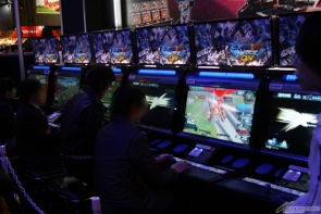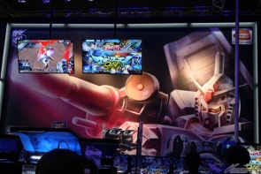 ▲バンダイナムコエンターテインメントのブースには、最新アーケードゲームの試遊台が登場!「U.C.カードビルダー」や「EXVS.MB ON」の試遊台コーナーは大盛況となっていた!さらに、「U.C.カードビルダー」は試遊すると