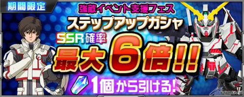 さらに、今回初めて実施される「ステップアップガシャ」では、ガシャを引いてステップアップするたびにお得な条件となっていく。強敵イベント「人が望む未来」で活躍する「キュベレイ」や「スサノオ」などのユニットも登場するので、ぜひともゲットしてイベントに備えよう。