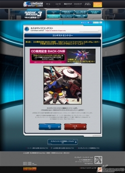 ตอนนี้ทางเวปไซท์ "Gundam Perfect Game"(จากนี้เรียกย่อ GPG) ที่ดำเนินการโดยBandai Namco Entertainment ได้จัดงานประกวดกันดั้มเครื่องออริจินอลจากเกม Gundam Breaker 3 ชิงถ้วยรางวัล BACK-ON Cup