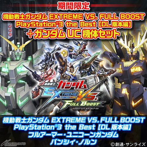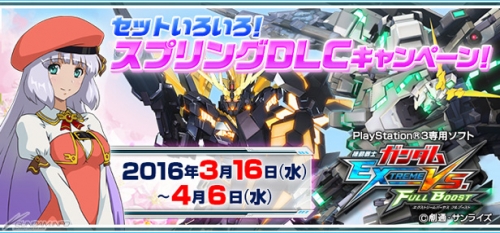 เกมสำหรับเครื่อง PS3 "Mobile Suite Gundam EXTREME VS. FULL BOOST (เอ็กซ์ตรีม เวอร์ซัส ฟูลบูสต์)" ที่กำลังวางจำหน่ายในขณะนี้โดย BANDAI NAMCO Entertainment จะเริ่มแคมเปญ "Spring DLC Set Campaign" และ "GP Bonus Campaign" ตั้งแต่วันพุธที่ 16 มี.ค. นี้เป็นต้นไป