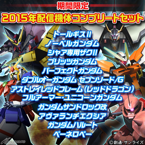 รวมโมบิลสูทที่เล่นได้ซึ่งเคยปล่อยในปี 2015 ทั้งหมด 12 ตัว